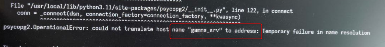 Причина: расчетная часть и база данных находятся в разных Подах Подмана. Взаимодействуют они через DNS протокол. Это взаимодействие обеспечивает библиотека aadvark-dns. Если ее нет, или она не используется, то будет возникать ошибка.