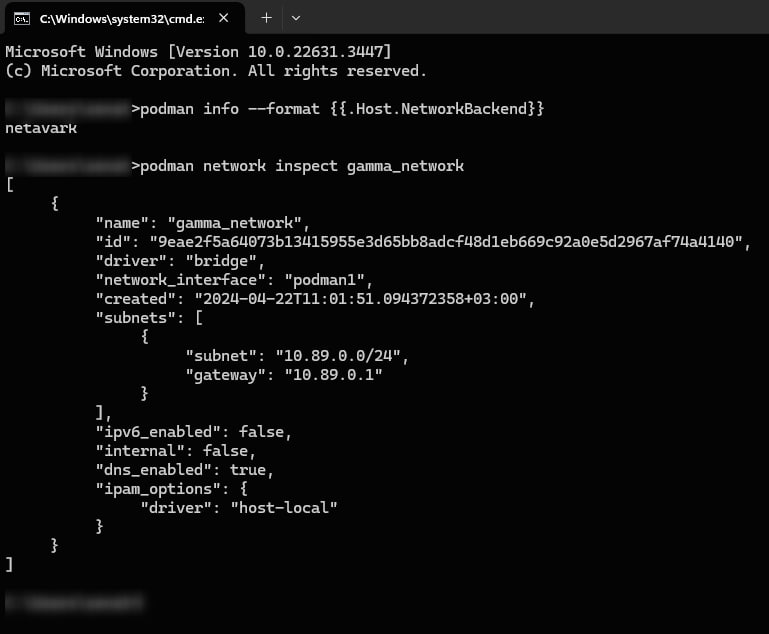 Так же можно проверить включен ли DNS сервер в нашей сети (доступно после сборки бека): podman network inspect gamma_network Будет "dns_enabled": false если дрйвер CNI, а нам надо true.