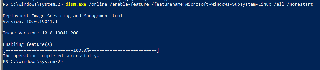 dism.exe /online /enable-feature /featurename:Microsoft-Windows-Subsystem-Linux /all /norestart