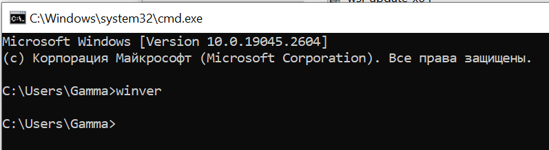 - Убедиться, что ваша система имеет версию 19045 или новее, более новые версии не поддерживают WSL2. Сделать это можно с помощью команды:
