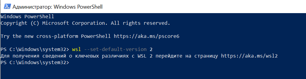 После установки необходимо открыть PowerShell и ввести следующую команду: 1. wsl --set-default-version 2 Эта команда установит версию 2 в качестве версии WSL по умолчанию.