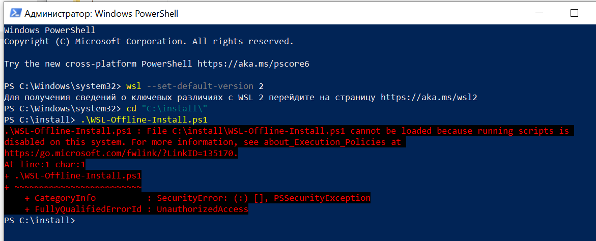 - Перейти в директорию, где находится скрипт WSL-Offline-Install.ps1 (cd C:/folder/where/script/is/located)