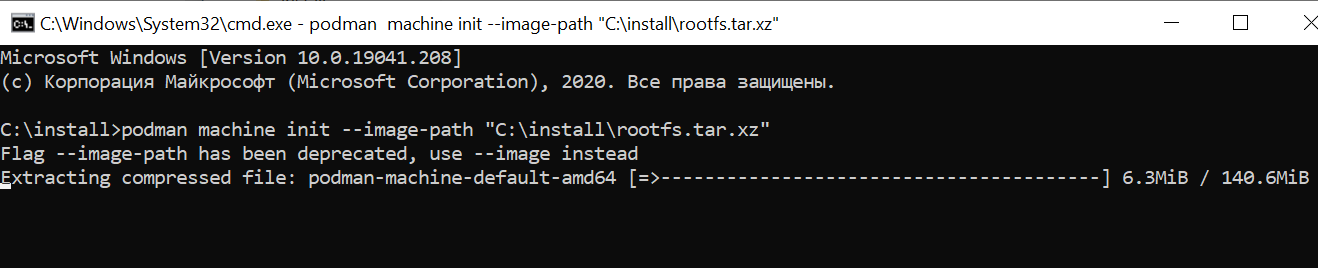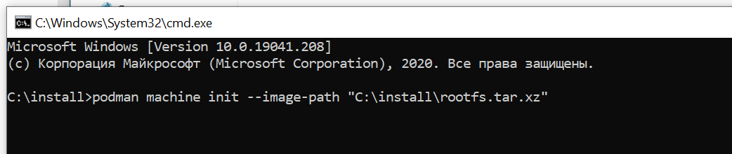 podman machine init --image-path "C:/Path/to/rootfs.tar.xz"