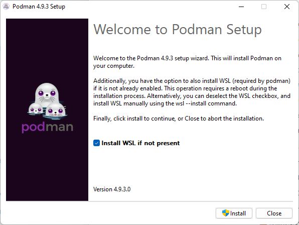 Вместе с установкой Podman будет также установлена система виртуализации WSL2, если она не была установлена ранее.