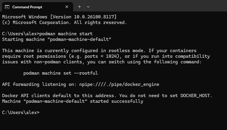 Как только установка Podman завершилась, необходимо запустить командную строку: